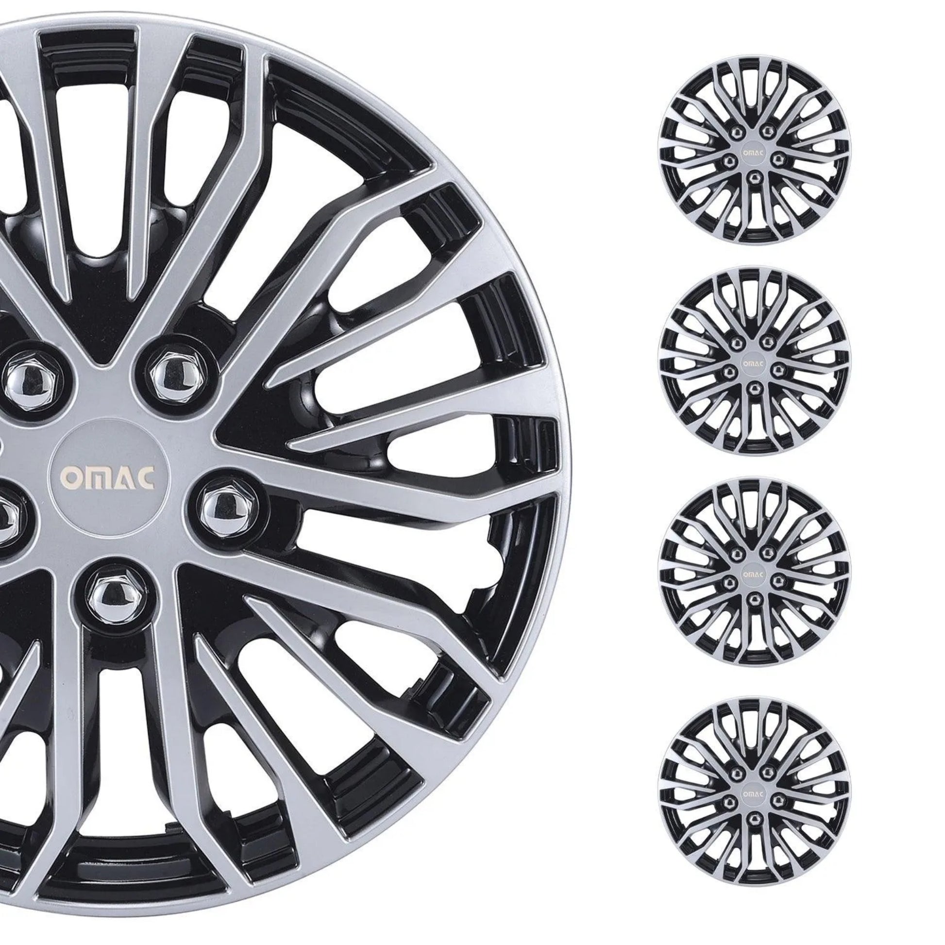 Rimini Hub Caps Wheel Cover 15" Grey & Black Full Set 4 pcs